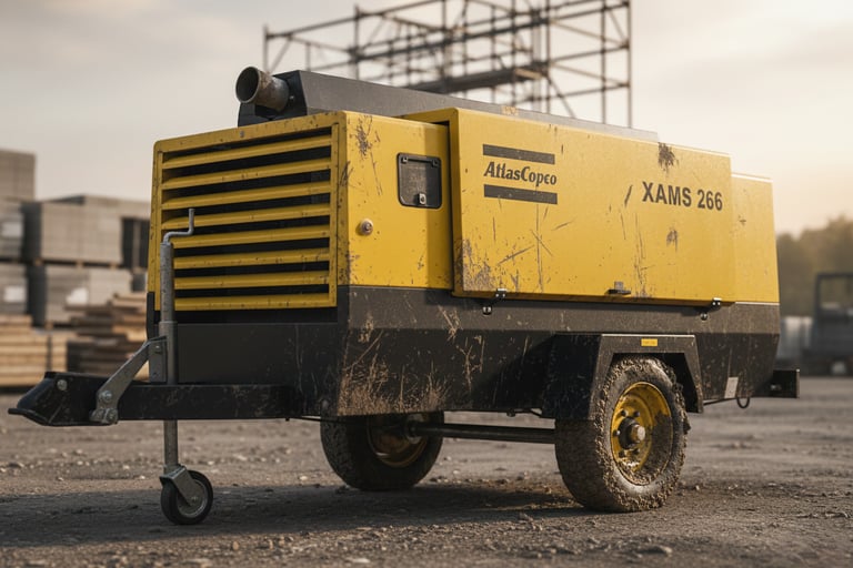 For used diesel compressors, heavy site usage creates additional risks for the chassis, axle, braking system, drawbar, and electrical harnesses.